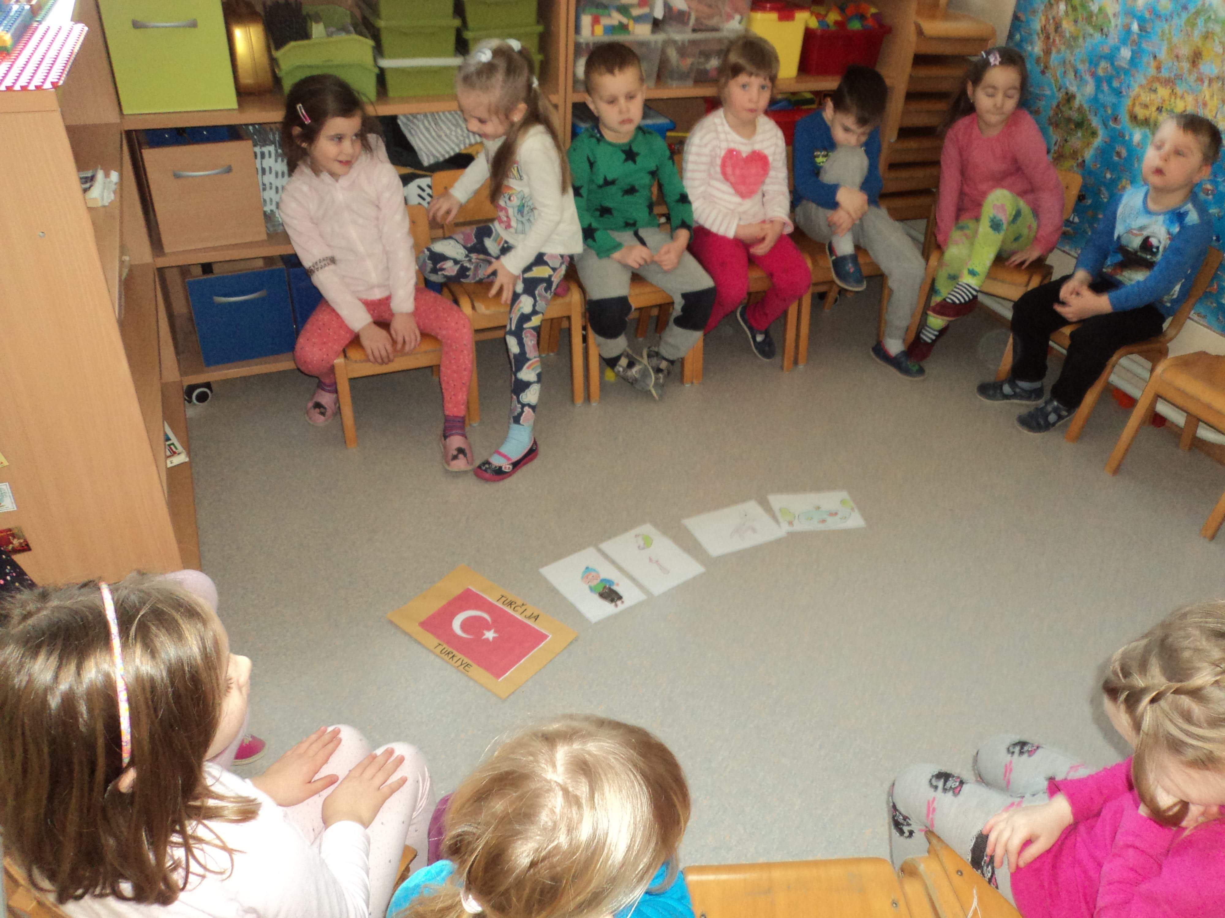 Prejeli smo pismo prijateljev iz Turčije. Ob slikopisu smo spoznavali njihovo legendo, na zemljevidu poiskali Turčijo in njene simbole ter izdelali lutko ob kateri smo urili matematične vsebine.