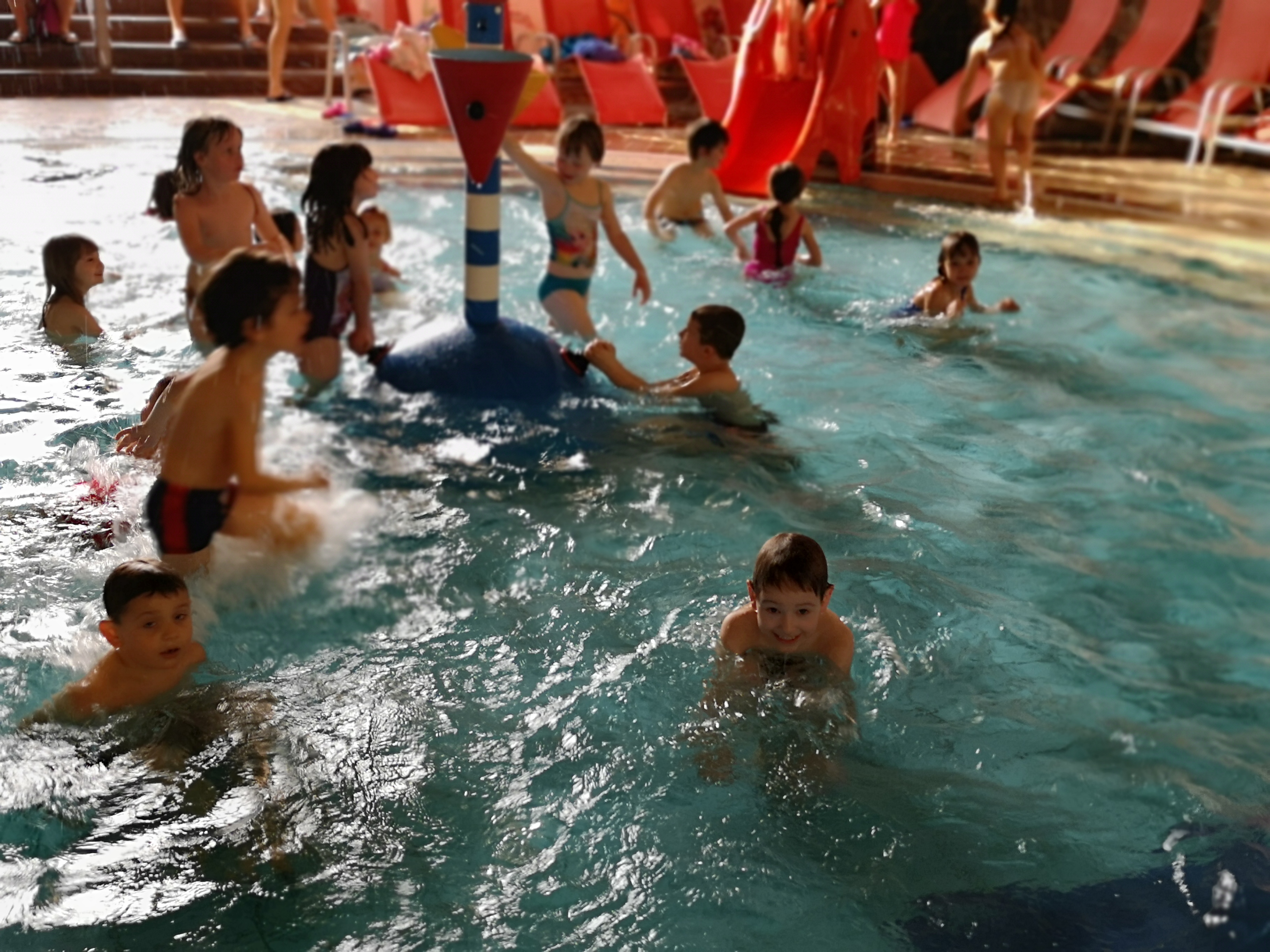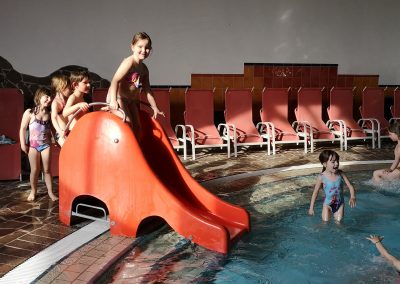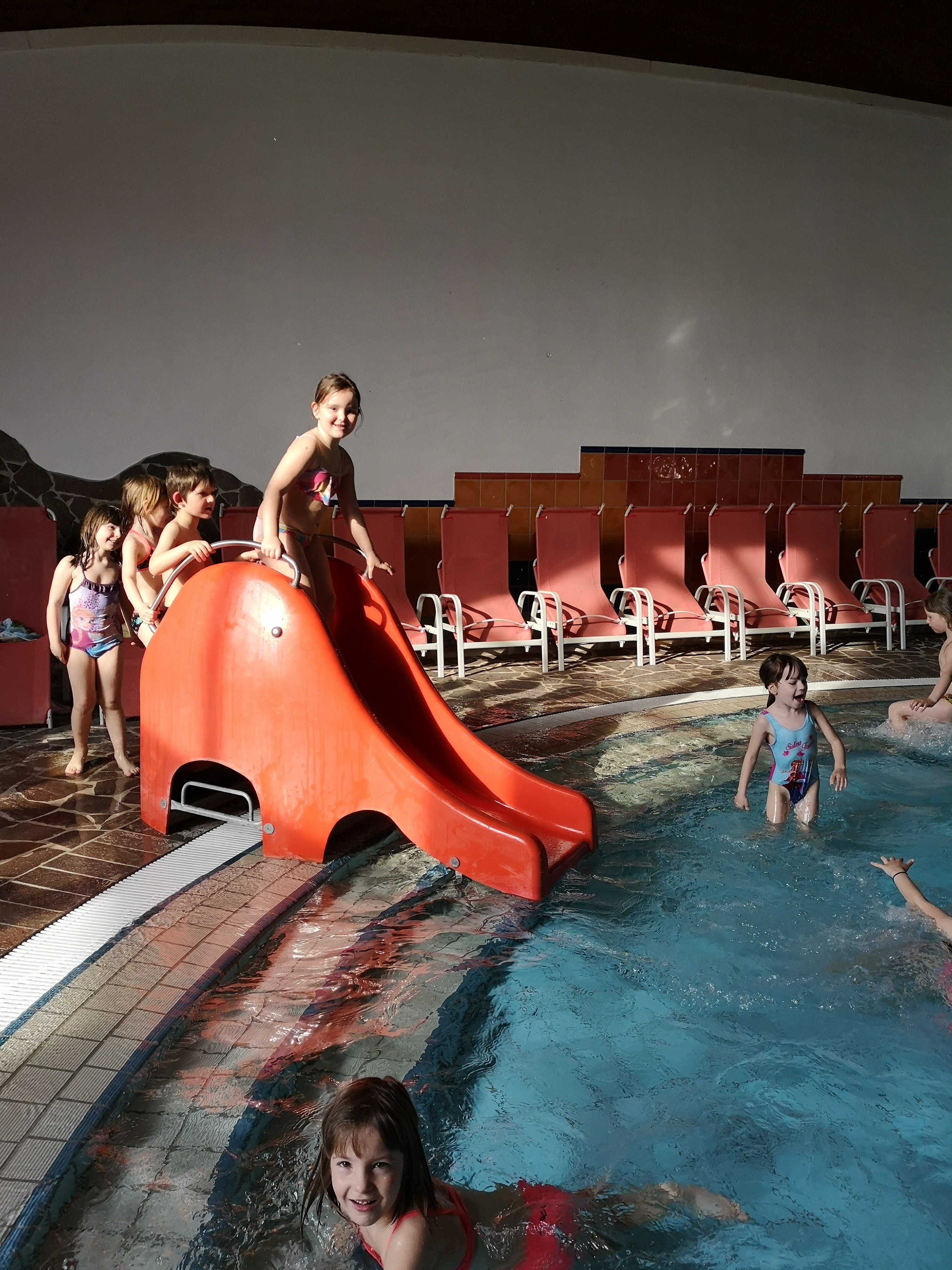 Ko smo prišli na bazen smo lahko se še malo igrali v malem bazenu in se spuščali po toboganu. (Zala , otrok)